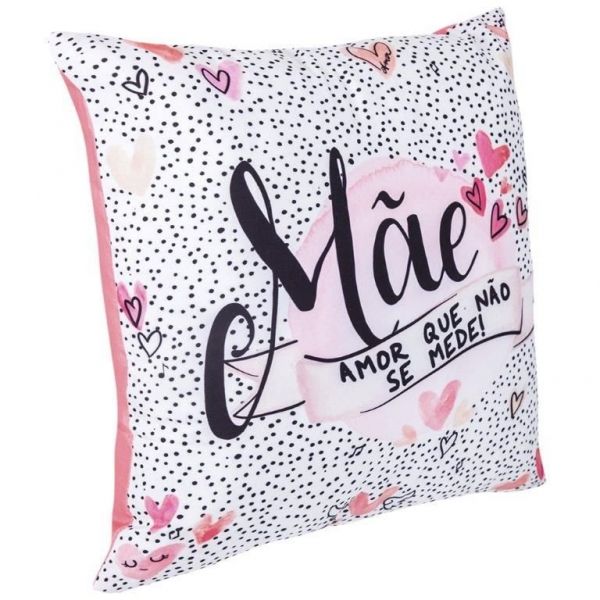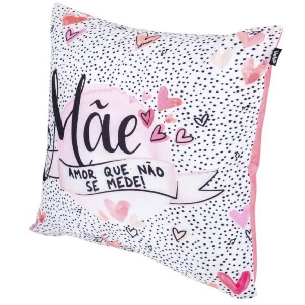 Se a sua mãe é daquelas que adora ter almofadas espalhadas pela sala ou quarto, decorando e deixando o ambiente mais aconchegante, essa é a capa de almofada perfeita! Com uma estampa de fundo branco e decorada com bolinhas pretas, ainda tem vários corações fofos em tons de rosa e a frase "Mãe, amor que não se mede"!