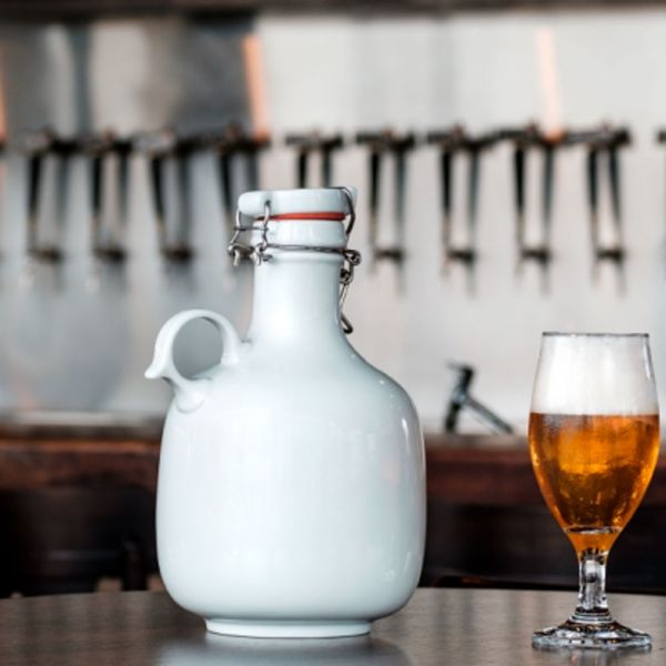 Garrafão Growler Slim P/ Cerveja Em Porcelana Branca 2 Litros